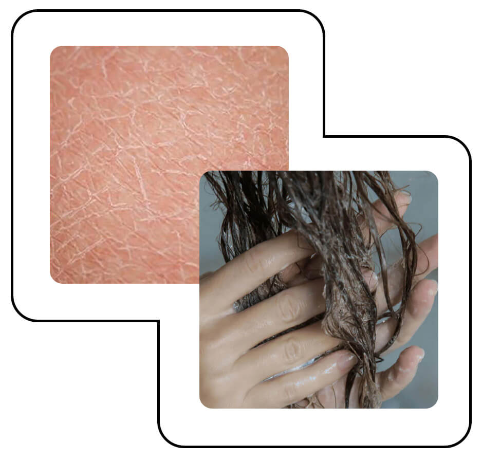 Hard water heeft een aanzienlijke invloed op de conditie van het haar. Wanneer hard water zich vermengt met zeep en shampoo, ontstaan er onoplosbare zouten die zich in het haar afzetten. Deze kalkaanslag maakt het haar droog en stug, waardoor het na het wassen moeilijk doorkambaar is. Bovendien vervagen kunstmatige haarkleuren sneller wanneer ze worden blootgesteld aan hard water. Constante blootstelling aan kalkaanslag kan ertoe leiden dat het haar er dof en levenloos uitziet, en tegelijkertijd brozer en minder handelbaar aanvoelt.