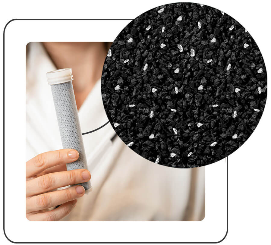 Geactiveerde koolstof is bekend om zijn vermogen om schadelijke stoffen uit water te filteren. Het verwijdert onder andere PFAS, pesticiden en chloor door ze te binden tijdens het filtratieproces. Dit maakt het water helderder en verbetert de smaak en geur.